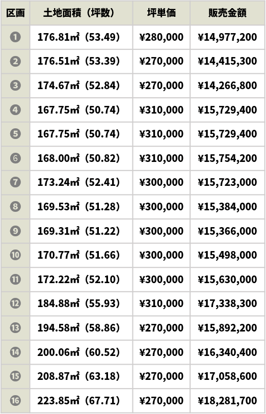| 設備・条件 | 電気 上水道 排水浄化槽 側溝 | ||